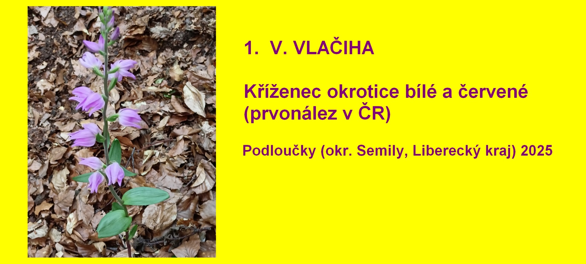 Vítězem se stal V. Vlačiha se snímkem prvonálezu okrotice Schulzovy (Cephalanthera ×schulzei), křížence okrotice bílé a červené (Cephalanthera damasonium x C. rubra) pro ČR.